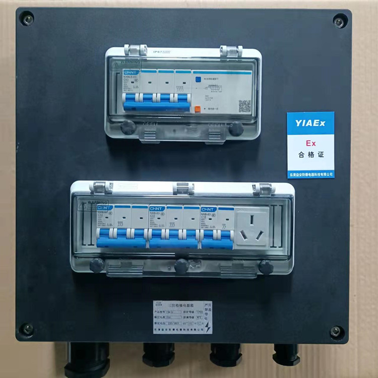 三防配電箱正泰元件,總開關(guān)帶漏電保護,三個分開關(guān)帶一個導軌式插座,壁掛式安裝,三防箱采用工程塑料壓鑄而成,表面為黑色,下進下出,外殼尺寸為360*360*120,可在戶內(nèi)戶外使用,優(yōu)質(zhì)緊固件,可根據(jù)客戶要求定制斷路器電流大小和級數(shù)。
